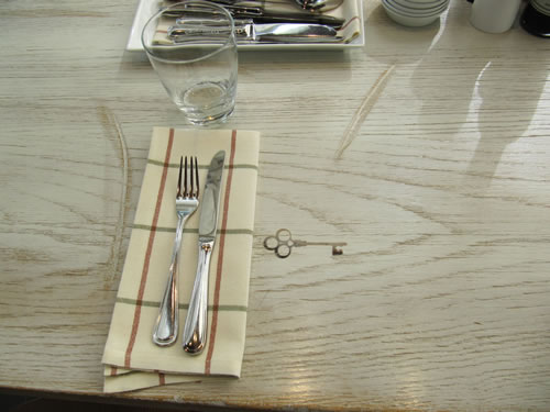 Jeedeen Platz hett en Computer-Ansluss, un du müsst allens per Computer bestellen! En Digital-Restaurant! Toeerst weern wi beförchten, wi kregen hier bloots Bits un Bytes to eten, aver dat Eten, dat de Lüüd an de Naverdischen serveert kregen, sehg beruhigend echt ut. Na denn ran!