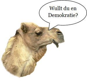 Dat geiht nu doch en beeten wiet, meen ick. De Araber har jo al Öl, Kamele, Pyramiden, en Harem un heel veel Sünn, nu ok nor Demokratie? Een kann jo nich allns hebben.