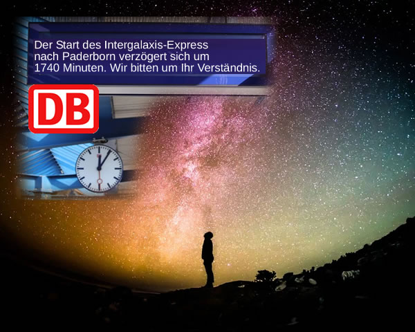 Wat mookt egentlich de Regeerung? De is fix an Ideen utbröden. Uns Bundsweertschapsminister Peter Altmeier to'n Bispeel plaant en düütschen Weltraumbahnhoff. Wo wi nich mol en stinknormalen Flooghaven in use Hauptstadt hinkriegt. Wo süht so en Weltraumbahnhoff överhaupt ut? Fohrt dor ok Nahverkehrstöög? Oder Nahverkehrsruumscheep? So för eenmol üm'n Maand un weer trüch mit Wekenendticket? De Idee vun Peterchens Ruumfohrt klingt twoors bekloppt noog, is ober gor nich vun Altmeier. Em kummt dat bloß topass, dor buten in't All meckert tominnst kieneen mehr an em rüm. Na siene letzten Snapsideen mit Bankenfusion, "nationale Champions" un Mindstafstänn för Windrööd kunn he en Uttied wiet weg wohl goot bruken. Un wi ok. De Idee för den Weltraumbahnhoff kummt vun 'n BDI. De wüllt sowat gern buun. Natürlich bloß, wenn de Staat dat betohlt. Un bi usen Bundswimi mach dat ween, dat wi dat tatsächlich mookt. Denn weet de grönen Männchen tominnst endlich, wo se utstiegen mööt. Bit dat bi us welk ankaamt, mag dat ober noch 'n beten duurn. Bedreven warrt de Weltraumbahnhoff nämlich vun de Düütsche Bahn.