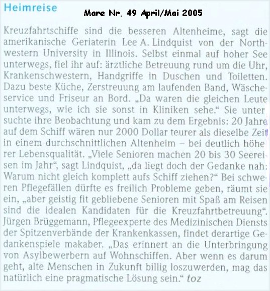 nich in en Hus för de ganz Ollen gahn, ne: ick gah up ein Krüüzfohrtschipp.