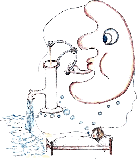 Nu laat wi den Lütten bi Ebb man sien Burgen wieder in'n Sand bugen un in't Woter plantschen, de Floot kümmt un wascht doch alln's wedder glatt. De grote Pump op den Mond, de sorgt för niegen glatten Strand, scheune Muscheln, Sneckenhüüs un Seesteerns. Geiht nu de Sommer to'n End un kümmt de Harvst, de lütte Jung is al lang wedder to Huus, snackt noch mol över den Urlaub an de See, villicht dröömt he bi de Nacht vun de grote Pump op den Mond un dat veele Woter, mang Ebb un Floot. Ik sett ik mien Gordenbank wedder torüch ik mein, ik stell wedder al de Klocken: De för'n Arm, de för't Handy, de in't Auto un noch'n poor annere, wedder ein Stünn torüch, op Wintertied.